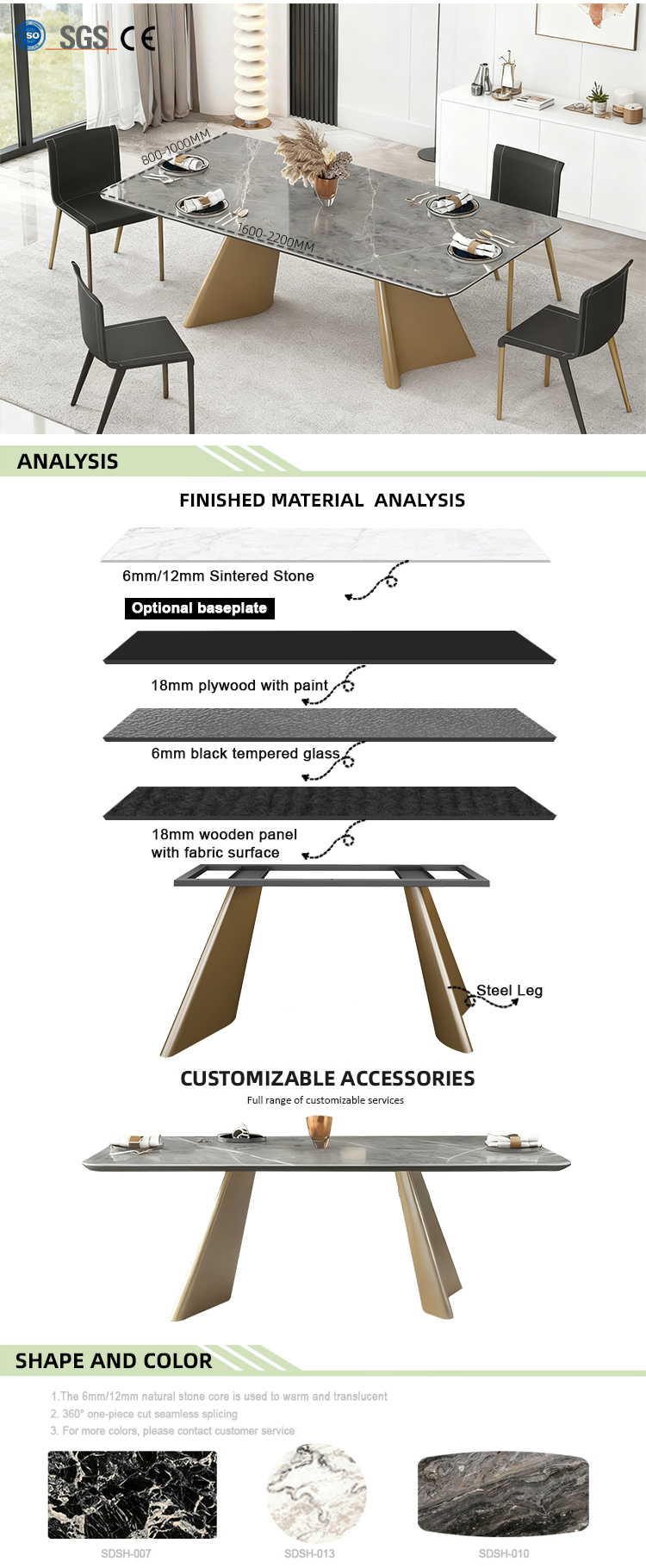 •  Customizable:dinging table,living room table marble table,large table,chair,table leg,table base